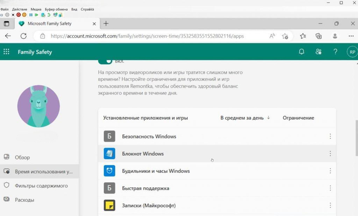 7. В обзоре у нас будут отображаться приложения, игры, которые ребенок запускал. Существует возможность их блокировки. Если у вас установлены программы, пользоваться которыми ребенку не рекомендуется, вы можете заблокировать их, или же выставить определенные ограничение по времени для них.