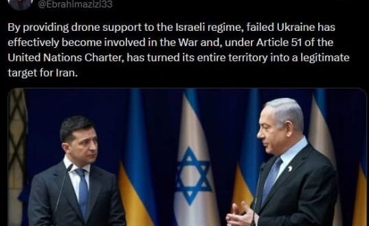 «Предоставляя поддержку израильскому режиму с помощью дронов, потерпевшая крах Украина фактически оказалась вовлечена в войну и, согласно статье 51 Устава ООН, превратила всю свою территорию в законную цель для Ирана», — пишет Азизи.